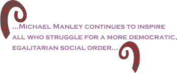 I am deeply honored to have been invited to address you this afternoon, on behalf of the Michael Manley Foundation. I personally knew and spent time with former Prime Minister Michael Manley, and I came to understand why he became beloved by so many millions of people throughout the world. As a champion of the poor and dispossessed, as a visionary spokesman for the politics of social justice, Michael Manley continues to inspire all who struggle for a more democratic, egalitarian social order.