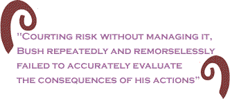 One of the consequences of this reactionary political and economic agenda, according to Edsall, was “the Reagan administration’s arms race” during the 1980s, which “arguably drove the Soviet Union into bankruptcy.” A second consequence, Edsall argues, was America’s disastrous military invasion of Iraq. “While inflicting destruction on the Iraqis,” Edsall observes, “Bush multiplied America’s enemies and endangered this nation’s military, economic health and international stature. Courting risk without managing it, Bush repeatedly and remorselessly failed to accurately evaluate the consequences of his actions.”